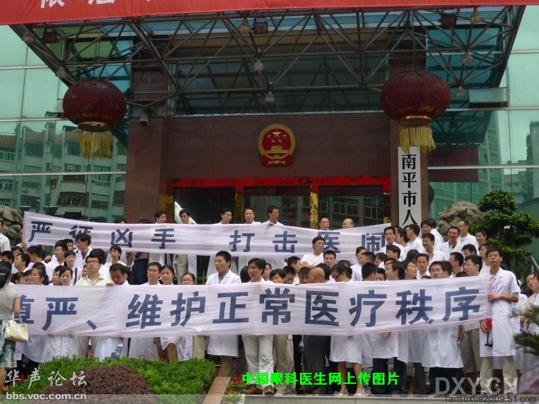 题目:医院史上黑色的一天! 作为医院实习生,我觉得我有责任有义务把发生的这件事记下来,让更多的人知道医生现在的生存环境是多么的恶劣!外界舆论不要再随便地指责医生了! 2009年6月21日上午,我一如既往早早到心内科上班.一去便听到高医生在说门诊楼又有人闹事了.我开始也没放心上.9点左右护士跑进来说,医务科来电话要全体年轻医生紧急到办公楼门前集合.我有点觉得不太妙.这种医闹事情以前也发生过几次,通常都是病人死了,家属索赔不成,便花钱雇来所谓的"职业医闹"(我相当相当鄙视这些人渣)到医院闹事,摆花圈,砸东西,破坏医院正常运行,以此对院方施加压力,达到索赔目的.我和带教医生商量期间,医务科又来了好几个电话说要赶快集中人.我意识到这次情况比较严峻了.果然,很快从其他医生口中得到消息:出事的14楼泌尿外科已经被病人家属和医闹"占领"(用这个词我真的觉得很悲哀),医生被打,护士也不放过.张旭医生和一名保安人员更是被关在办公室里失去人身自由.整个14楼处在医闹的控制下,正常的诊疗工作已经完全瘫痪.医生们听了都非常气愤,也为同行的人身安全担心.要知道,这群人渣为了达到目的会不择手段.大家聚在一起商量对策,最后达成共识:想让闹事人自己放出医生是不可能的;想靠***去放出人也不可能(事后确实如此,当大家冲上去救人时,竟看到几个防暴***悠然的坐在门口的椅子上,有说有笑,而科室里面早已是乱糟糟的一团.天啊!真不敢相信***竟还给医闹守门!你们说是不是警匪一家?!)在这时候领导也是靠不住的,院长整个过程就没看到人,在这个关系到医院利益的时候似乎所有领导都躲起来了(妈的,个个在会上批人那么有底气,现在都成缩头乌龟了!)等了半天医务科长才跑出来说要大家冷静,让***来解决.可大家左等右等,眼看都中午了还没个结果,也不知道14楼被关的医生现在怎么样了,安全不,有水喝没有.最后大家终于等不住了,为了同行的利益,大家决定冲了,冲上去,把被关的医生拼出来.大家第一次冲上去时立马暴发了冲突,医生们和医闹打成一团,互砸东西,科室一片狼籍.我没见过这世面,当时就傻掉了.但我看到了***竟在一旁看热闹,最后等双方打得差不多了,拿出瓦斯催泪弹喷向医生!被喷后很多医生当场就全身无力,被迫退了下来.很多医生当时就受伤了.可医生还关在里面.为了把医生救出来,大家决定再冲在一次,这次大家分两路,我和一半人从前门上,另一半从后门上.上去就看到了防暴***给闹事者守门一幕,还好没去等***"调解".医生们情绪激动,高呼:"放出医生!放出医生!"没想医闹如此疯狂,突然扒起靠墙的长椅向医生狠砸过来.医生马上被激怒了,本来就是闹事不对,还敢如此!双方又发生了第二次冲突.看到竟有人打带教老师,我一下就火了,此前我还是比较克制的,这下我明白了,跟这些人渣讲道理是没用的,只能以暴制暴,来点硬的,我也跟着冲了上去,大家打成一团.几个医生趁乱把被关医生救了出来.当时场面真的非常非常混乱!无法用语言形容!把医生救出来后大家就撤,没想到在一楼大厅门口再次遇到那群医闹,双方再次发生语言冲突,但没打斗,有几个***也在那作样子地"维持秩序".本以为不会再肢体冲突了,没想到门口的混混竟越聚越多,都是些二十几岁的年轻人,身着奇装异服,手臂印着纹身,一副不羁的模样.有些人手持长木板(事后才知道这些人都是带刀来的,用报纸包住,要么别在腰间,现在想想真的很后怕,真的是太无法无天了!).不时有小车开来,从车上跳下小青年.大家都知道情况不妙(医生人数少不说,又都是知识分子,戴眼镜的哪里打得过从小打到大的混混?)接下来这一幕真的只有在电影的黑社会才看得到:带头的几个混混突然操起木板,发疯似的朝站在前面的几个医生冲打过来!场面一下失控,所有混混都在追打医生!***在这时候有个屁用,看着他们到处追打医生!大家也都没见过这世面,一下子乱了,各自逃生,我躲到椅子后,逃过一劫.现在想想要是被发现,绝对被打成重伤!事后听人说受伤最严重的是个ICU的年轻医生,当时他在站最前面,跑慢了,被用木板打倒在地,腰被捅了两刀,大腿被划两道长口子,现在自己住进了ICU.最后的院领导的解决方式更另人窝火:科室被砸了,医生被人砍伤,还要倒赔人21万!花钱销灾吗?正是政府的不作为和院领导的无能一次又一次助长了医闹闹事,闹大就有钱赔,谁不来闹呢?! 写到这我心情已相当沉重了,试想,医疗本身就是有风险的,谁能保证每个病人都能医好呢?治好是应该的,一旦死人就是要打你,这样谁还敢当医生?医生可以去救别人,但是发生医疗纠纷时谁来保护医生,医改真的改到本质了吗?中国医生生存环境是如此的恶劣,说砍就被砍,哪天死在自己病人手上都不知道,这样医生当来干什么? 注:我的理想曾是白衣天使,但接二连三发生的医患冲突让我对现实一再失望,我想,在这么自私的医疗环境里,救别人不如救自己,趁早改行,明哲包身吧. (备注:作者为南平市第一医院实习生,亲身经历了当天的冲突过程。)