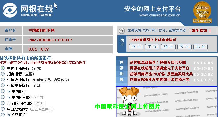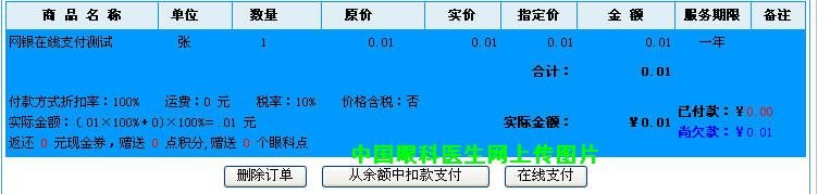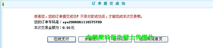 (2)通过在线支付,免去跑银行办汇款之苦。手续费率同银行1%,而且没有最低收费(因本站眼科宝贝价格低廉,所以1%的费用基本是几毛-1元),而银行汇款最低收费一般为5元。