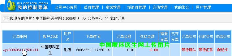 (2)点击“商城管理”下拉菜单中的“我的订单”,再点击我已下但没有完成支付的订单编号
