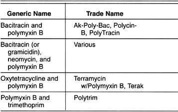 Several ophthalmic preparations are available that contain a mixture of antibiotics and bacteriostatic agents (Table 3-2).