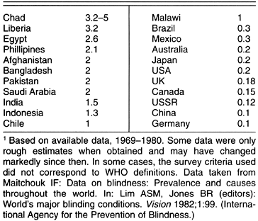 Table 23-2 lists some countries where fairly reliable data are available about the prevalence of blindness.