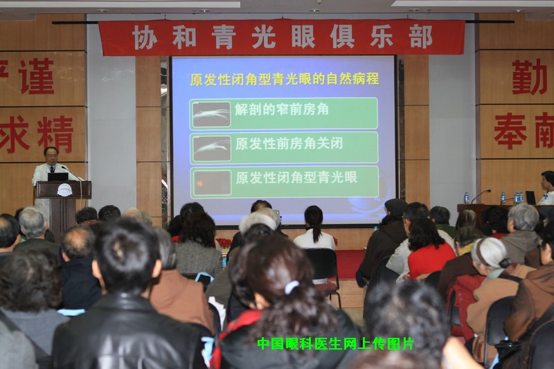 北京协和医院眼科青光眼专业组为了普及青光眼知识,帮助青光眼患者及其家属了解病情,更好的和医生一道应对青光眼疾病的挑战和威胁,于2011年3月5日世界青光眼周来临之际,在北京协和医院北配楼三楼多功能厅举办了协和青光眼俱乐部专题活动,来自全市的二百多位青光眼患者及家属参加了此次活动。